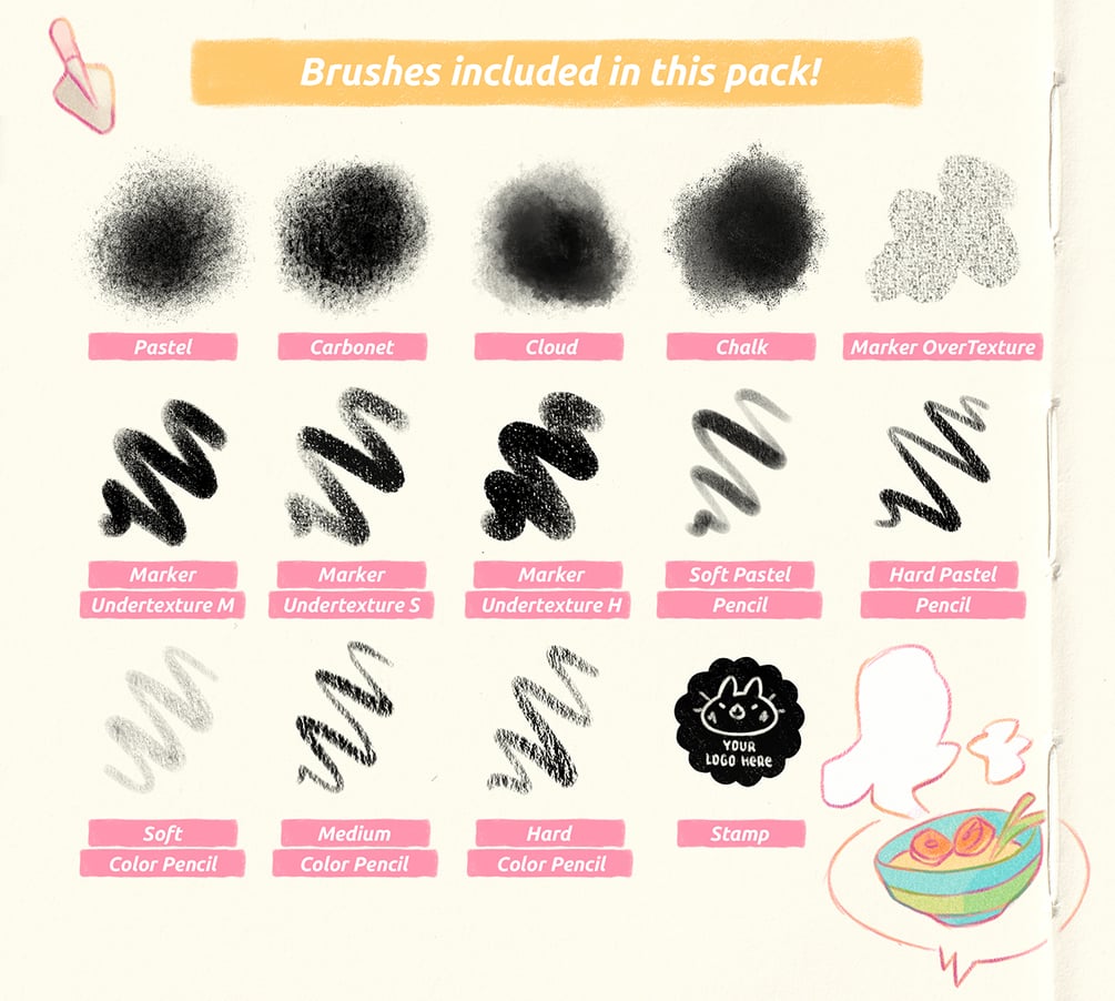 - 4 background brushes (Clouds, pastel, chalk...)