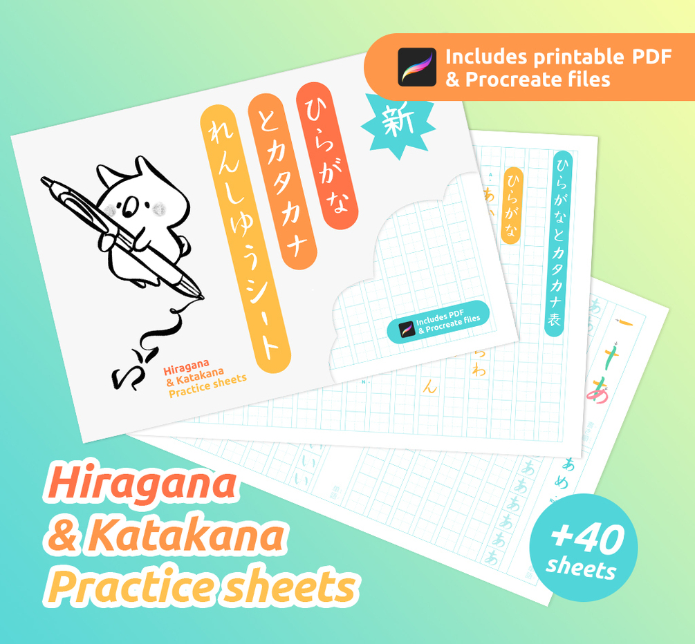 2 Printable PDF, 2 Procreate files and a Kanji sheet