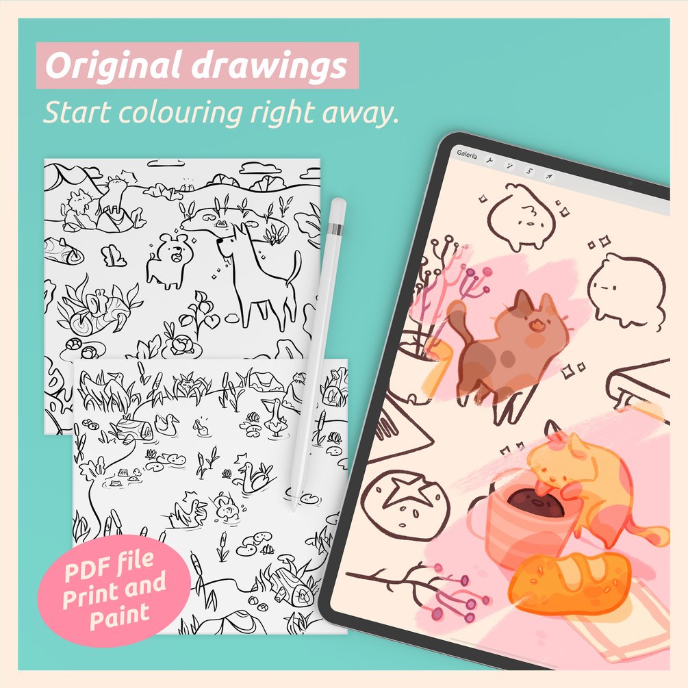 - 3 Original drawings to start colouring or just print and paint! 🖍️