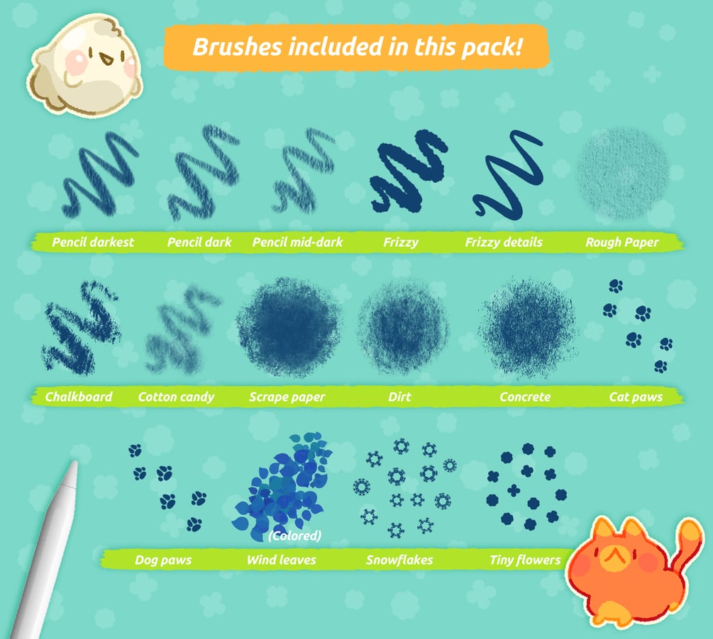 The wait is over! This new brush pack contains all the brushes I've created that reflect my current drawing style. More vibrant, but cute as always!